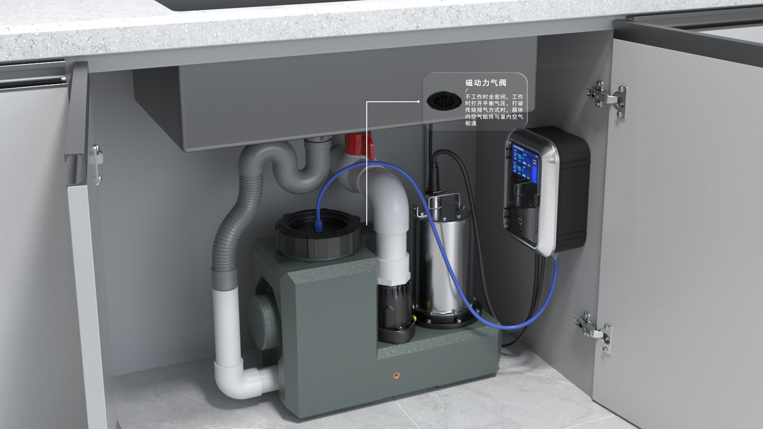 關(guān)于智能污水提升器的安裝位置,一般就放在櫥柜里。箱體小巧簡(jiǎn)單,放在櫥柜也占不了多少地方。管道會(huì)在裝修時(shí)就進(jìn)行鋪設(shè),所以這一套安裝下來(lái),并不會(huì)影響廚房的布局。雖然安裝在了不起眼的地方,也不用擔(dān)心滲水的問(wèn)題,機(jī)器會(huì)自動(dòng)報(bào)警,將信息發(fā)到互聯(lián)的手機(jī)。能掌控機(jī)器,才是排水的安全感。