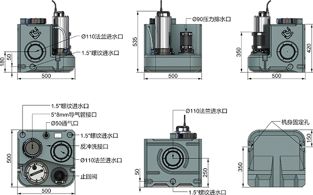 ·  入水口:3×φ110,3×φ50,1×φ50/110