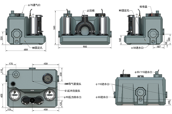 ·  入水口:3×φ110,3×φ50,1×φ50/110